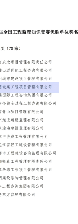 承擔工程監(jiān)理和全過程工程咨詢服務的多個項目先后榮獲6項國家級獎項(魯班獎兩項、國優(yōu)工程獎兩項、中國鋼結(jié)構(gòu)金獎、中國安裝之星獎),及數(shù)十項省級優(yōu)質(zhì)工程獎。