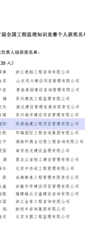 過去的一年里,面對嚴峻的市場環(huán)境,公司全體員工團結(jié)一心、砥礪奮進,總體完成了經(jīng)營指標,實現(xiàn)了“保收入、保開支”的雙保目標,確保了公司的正常運轉(zhuǎn)。公司榮獲“河北省工程監(jiān)理行業(yè)品牌企業(yè)”和“河北省工程造價咨詢行業(yè)品牌企業(yè)”兩項大獎,成功取得水利工程施工監(jiān)理乙級資質(zhì)。成功舉辦了公司成立25周年暨再獲國優(yōu)獎系列慶祝活動,公司榮獲首屆全國工程監(jiān)理知識競賽“優(yōu)勝單位獎”,參賽選手榮獲“個人二等獎”。
